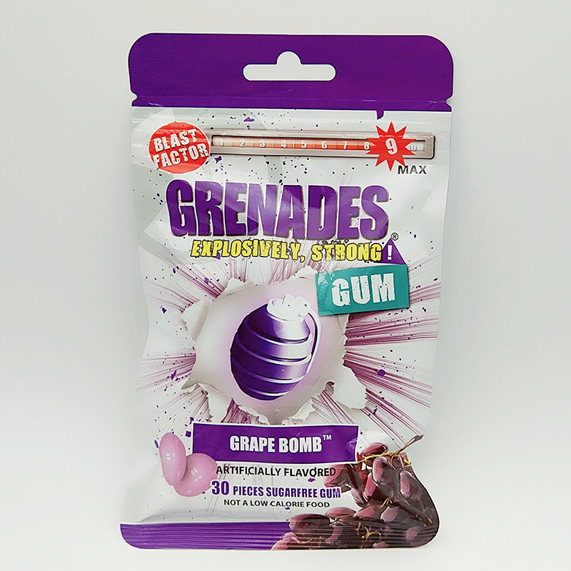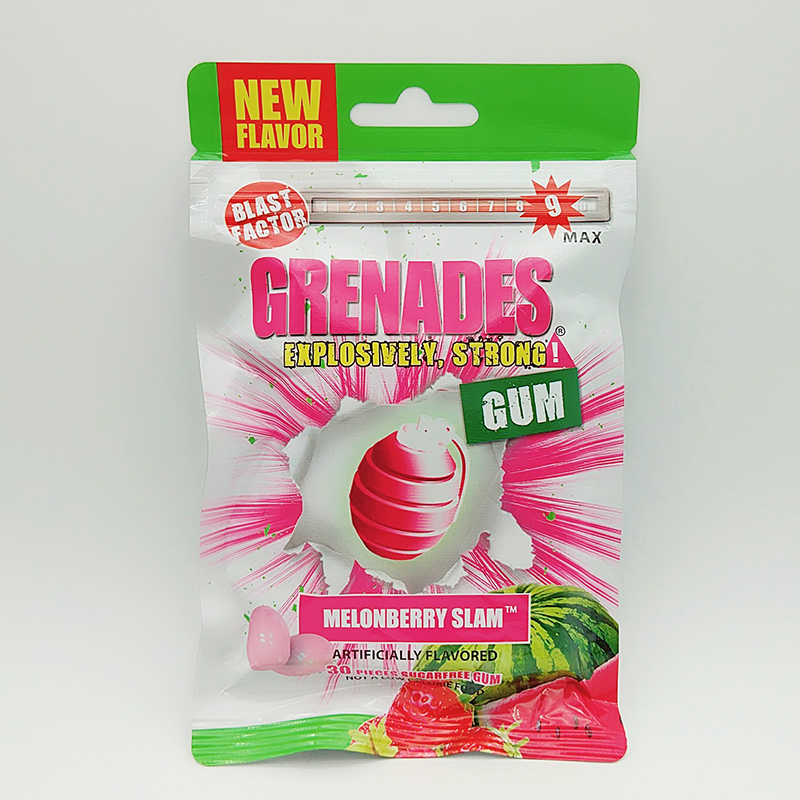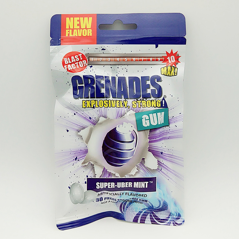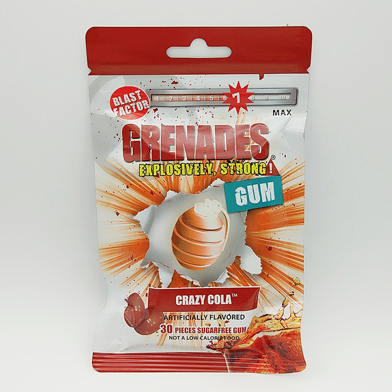 It is a brand established in the United States in 2013. Taiwan Sanshi Tianhe International Co., Ltd. has been authorized to produce under the brand. The company has now mainly sold its products to the United States and Taiwan. Grenades chewing gum can be divided into 10 grades based on fresh-tasting, and is more chewy with long-lasting scent so as to effectively remove odors from the mouth! One piece of Grenade chewing gum is equivalent to several pieces of A brand chewing gums! 6 million packets are sold in supermarkets on a daily basis! 10 grades for your fresh tasting; instant refreshing; improved tasting; free from Aspartame for healthier mouth! A brand from the United States;